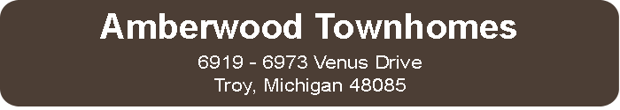Amberwood Townhomes is located in Troy, just south of Rochester Hills and Downtown Rochester; also close to schools, parks, shopping, nearby offices, Troy Beaumont Hospital, M-59 and I-75.