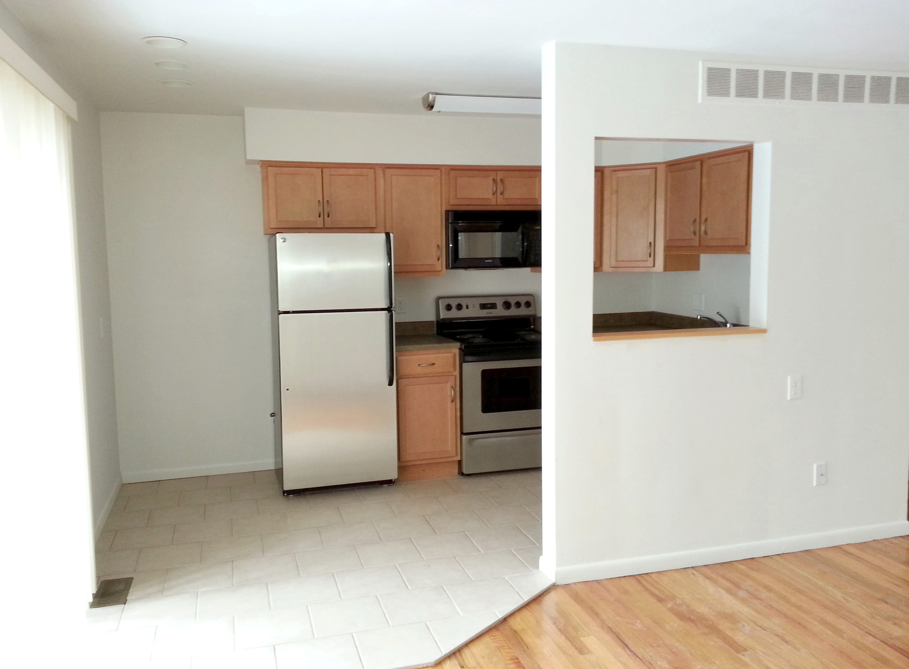 Rent includes heat, hot and cold water, electric range and oven, microwave, refrigerator, dishwasher, central air conditioner, ceramic tiled bath and kitchen, hardwood floors, vertical blinds, and paved parking. An in-unit washer/dryer is provided. Cable T.V. available. |