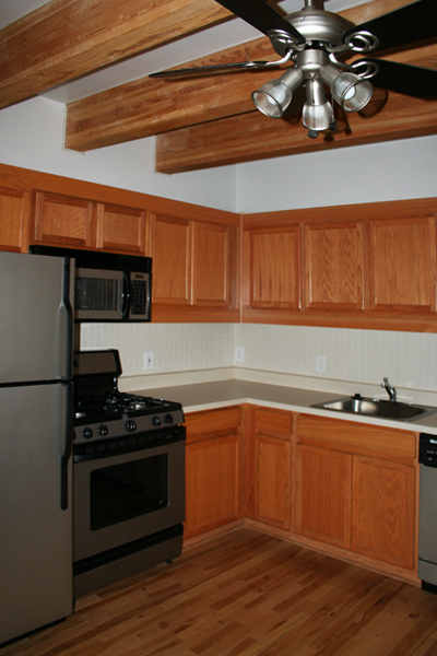 Each of the townhomes also includes a laundry room with full-size washer and gas dryer, timber beams (mid level), and cathedral ceilings (upper level).