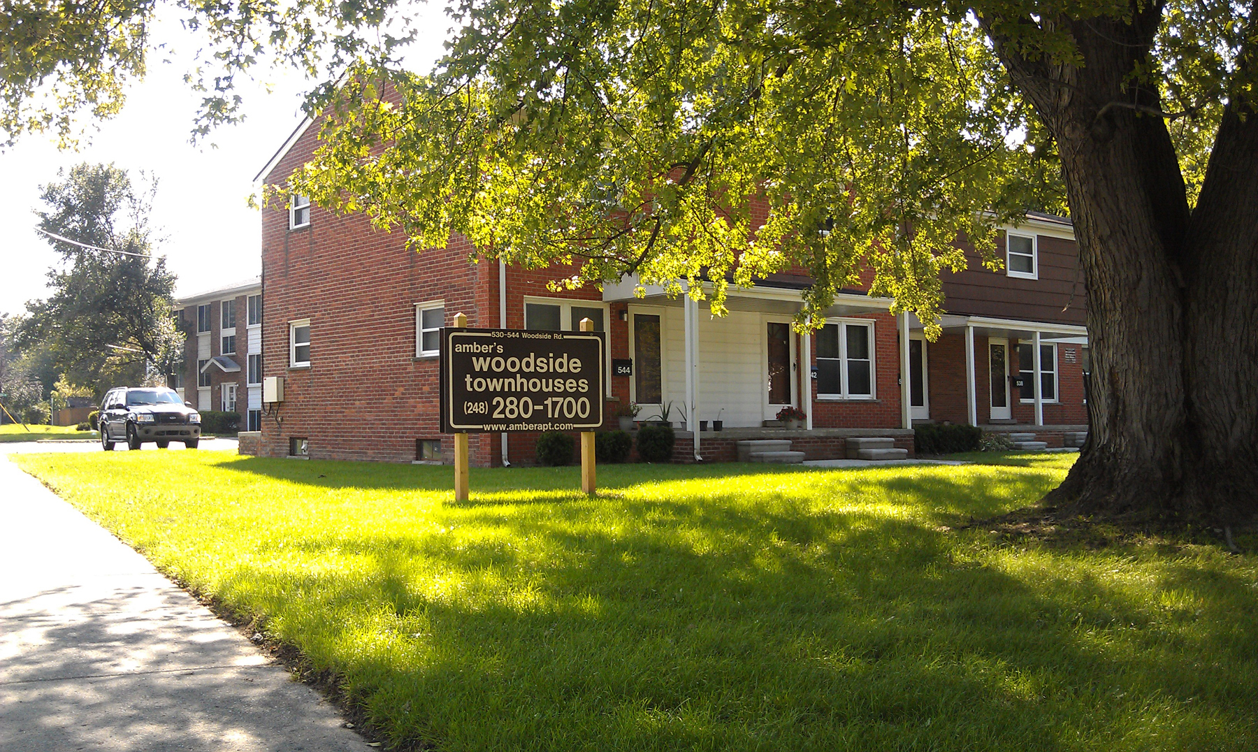 amber's Woodside Townhouses -- A 2-story brick building located at the southwest corner of Woodside Rd. and Rochester Rd., midway between 13 and 14 Mile Roads, Royal Oak. |